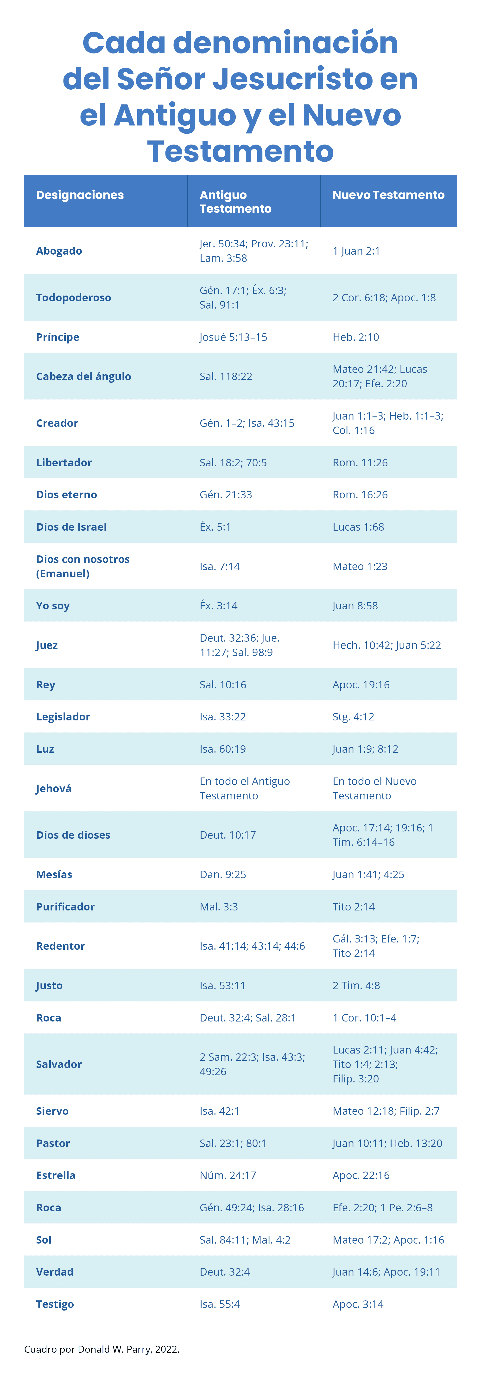 La comprensión adecuada de estas designaciones demuestra que Jesucristo es el Dios del Antiguo Testamento; además, el conocimiento de las designaciones equivalentes añade una gran comprensión del Señor Jesucristo, así como de Su divina y formidable obra con los individuos, pueblos y naciones tanto en el Antiguo como en el Nuevo Testamento. Además de los ejemplos de este cuadro, se podrían exponer muchos otros.