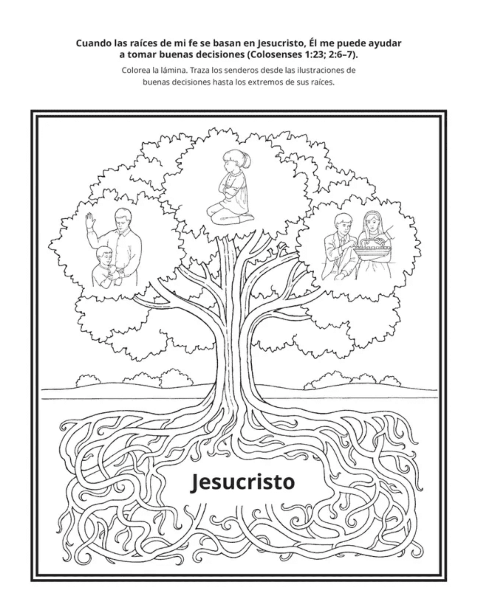 Imagen para colorear: Cuando las raíces de mi fe se basan en Jesucristo, Él me puede ayudar a tomar buenas decisiones