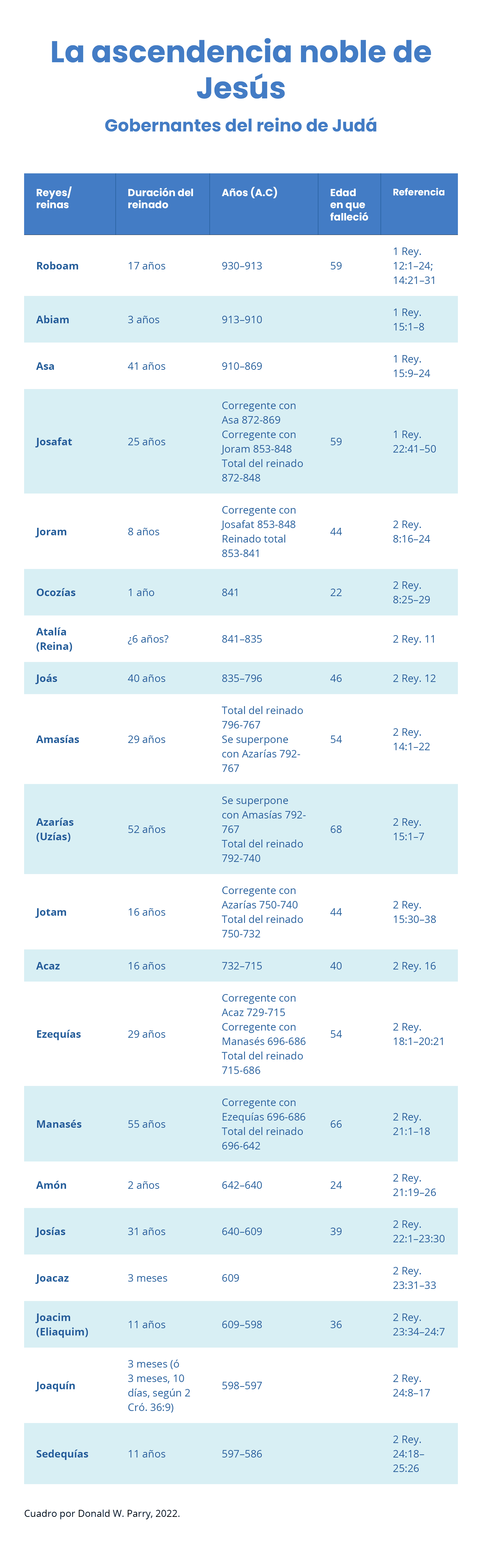 En comparación con la longevidad promedio de hoy en día, la vida de los reyes no era larga. Según los datos disponibles, la duración media de la vida de un rey en Judá era de cuarenta y cuatro años (véase la columna 4). El rey más joven murió a los veintidós años y el más viejo a los sesenta y ocho.
