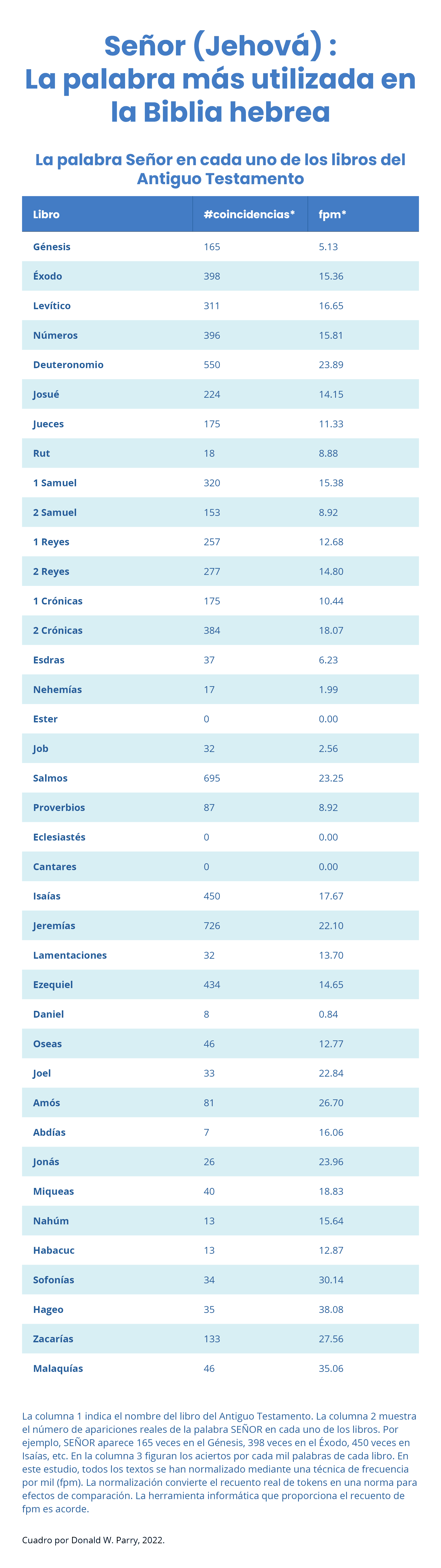 La palabra Señor en cada uno de los libros del Antiguo Testamento