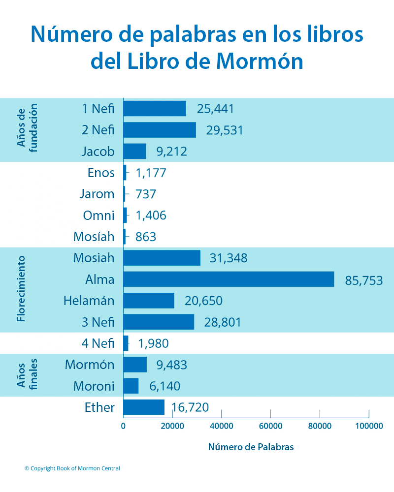 Cada libro que compone el Libro de Mormón varía significativamente en longitud. En general todo el registro se concentra tres periodos: la fundación de la civilización nefita (siglo VI a. C.), su florecimiento (150 a. C.-d. C. 50) y sus años finales (siglo IV d. C.).