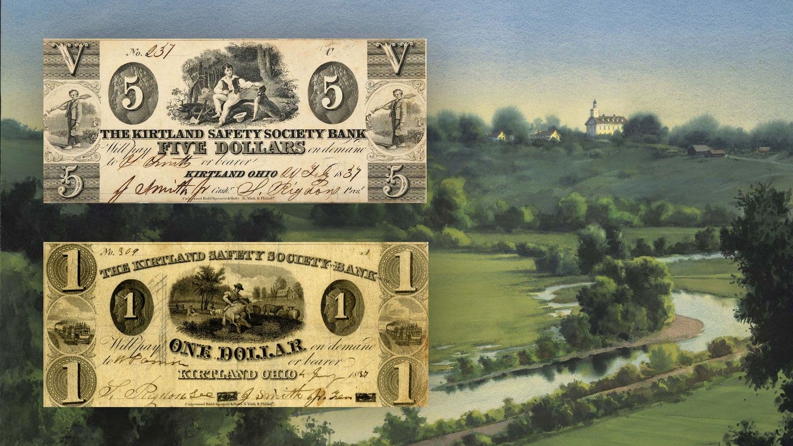 El 12 o 13 de septiembre de 1836, José Smith, Sidney Rigdon, Hyrum Smith y Oliver Cowdery regresaron de Salem, Massachusetts "con un claro sentido de dirección" para "establecer un banco y adquirir un terreno" como una solución para los problemas económicos de la iglesia4. En la década de 1830, los bancos podían adquirir capital en forma de dinero fuerte (monedas de oro y plata), títulos de propiedad y otros activos; luego emitieron préstamos a corto plazo en forma de "notas de banco" [billetes], que eran esencialmente deudas que podían cambiarse en el banco por dinero fuerte. Si la institución que emitía los billetes era confiable y respetada en la comunidad, sus billetes podían intercambiarse entre personas como moneda real. Por lo tanto, los bancos permitieron a las economías de fronteras como la de Kirtland transformar activos fijos (como un terreno) en activos líquidos (billetes)5.