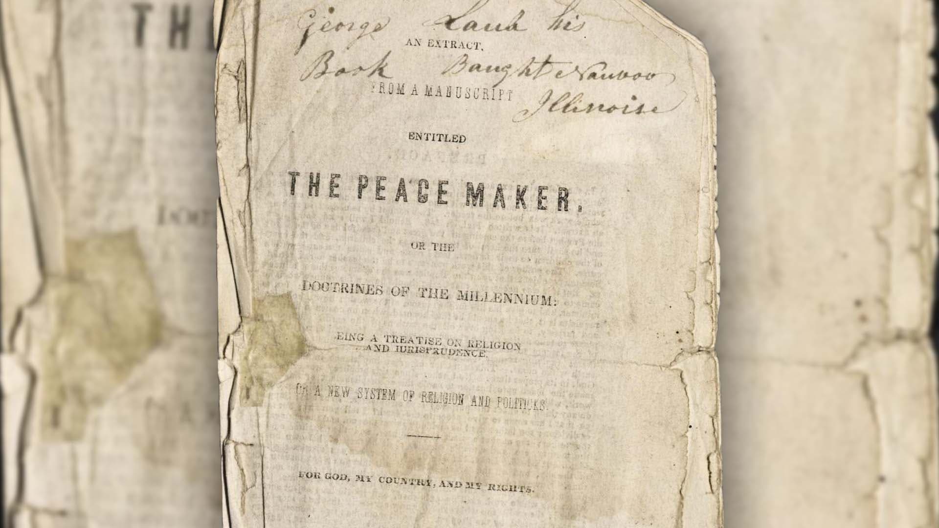 Sin embargo, la evidencia histórica, es decir, las cartas escritas por el mismo Jacob, indican firmemente que José Smith no estaba involucrado. Unos dos años antes de que se publicara Peace Maker en Nauvoo, Udney Jacob escribió una carta al presidente Martin Van Buren en la que le indicaba que tenía un manuscrito que, si se publicaba, aseguraría la reelección del presidente6. Una década más tarde, en 1851, Jacob explicó a Brigham Young que ese manuscrito era el Peace Maker, del que dijo que "no fue escrito para este pueblo [los Santos de los Últimos Días] sino para los ciudadanos de los Estados Unidos que profesaban creer en la Biblia"7.