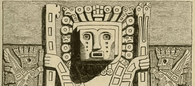 “Antes que los Incas reinasen en estos reinos ni en ellos fuesen conocidos, cuentan estos indios otra cosa muy mayor que todas las que ellos dicen, porque afirman que estuvieron mucho tiempo sin ver el sol y que, padeciendo gran trabajo con esta falta, hacían grandes votos é plegarias á los que ellos tenían por dioses, pidiéndoles la lumbre de que carecían; y que estando desta suerte, salió de la isla de Titicaca, questá dentro de la gran laguna del Collao , el sol muy resplandeciente, con que todos se alegraron. Y luego questo pasó, dicen que de hacia las partes del Mediodía vino y remanesció un hombre blanco de crecido cuerpo, el cual en su aspecto y persona mostraba gran autoridad y veneración, y queste varón, que así vieron, tenia tan gran poder, que de los cerros hacia llanuras y de las llanuras hacia cerros grandes, haciendo fuentes en piedras vivas; y como tal poder reconociesen, llamábanle Hacedor de todas las cosas criadas, Principio deltas, Padre del sol, porque, sin esto, dicen que hacia otras cosas mayores, porque dió sér ál os hombres y animales, y que, en fin, por su mano les vino notable beneficio. Y este tal, cuentan los indios que á mi me lo dixeron, que oyeron á sus pasados, que ellos también oyeron en los cantares que ellos de lo muy antiguo tenían, que fué de largo hacia el NORTE, haciendo y obrando estas maravillas, por el camino de la serranía, y que nunca jamás lo volvieron á ver. En muchos lugares diz que dió orden á los hombres cómo viviesen, y que les hablaba amorosamente y con mucha mansedumbre, amonestándoles que fuesen buenos y los unos á los otros no se hiciesen daño ni injuria, ántes, amándose, en todos hobiese caridad. Generalmente le nombran en la mayor parte Ticivlracocha, aunque en la provincia del Collao le llaman Tuapaca, y en otros lugares della Arnauan. Fuéronle en muchas partes hechos templos, en los cuales pusieron bultos de piedra á su semejanza, y delante dellos hadan sacrificios: los bultos grandes questán en el pueblo de Tiahuanacu, se tiene que fué desde aquellos tiempos; y aunque, por fama que tienen de lo pasado, cuentan esto que digo de Ticiviracocha, no saben decir déI más, ni que volviese á parte ninguna deste reino”. (Pedro Cienza de León, El señorío de los incas, Lima: Editorial Universo S. A., 1973, cap. V, págs. 18-19; ortografía original).